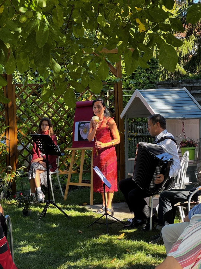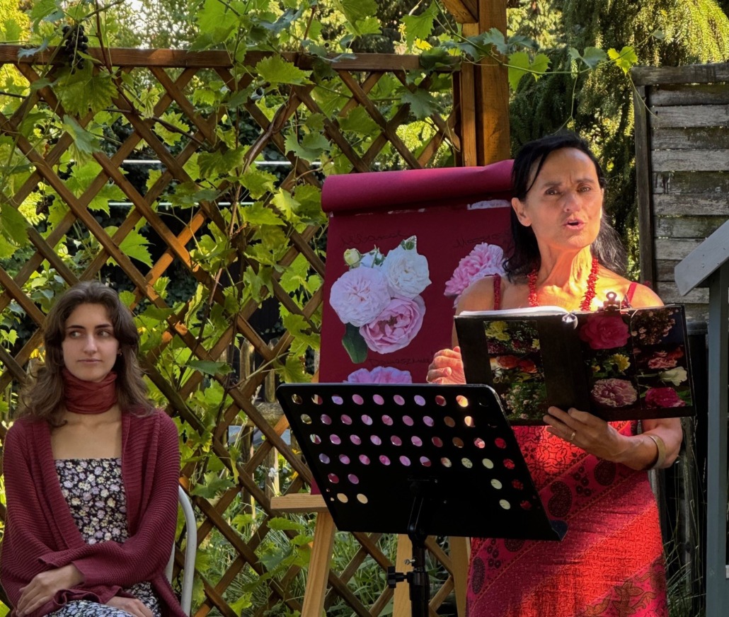 Andrea Held las aus dem Buch „Mein Sommergarten“ der englischen Schriftstellerin und Gärtnerin Vita Sackville-West. Im Fokus standen ihre Texte über alte Rosensorten wie Moos- und Albarosen – feinsinnig, beobachtend und naturverbunden.